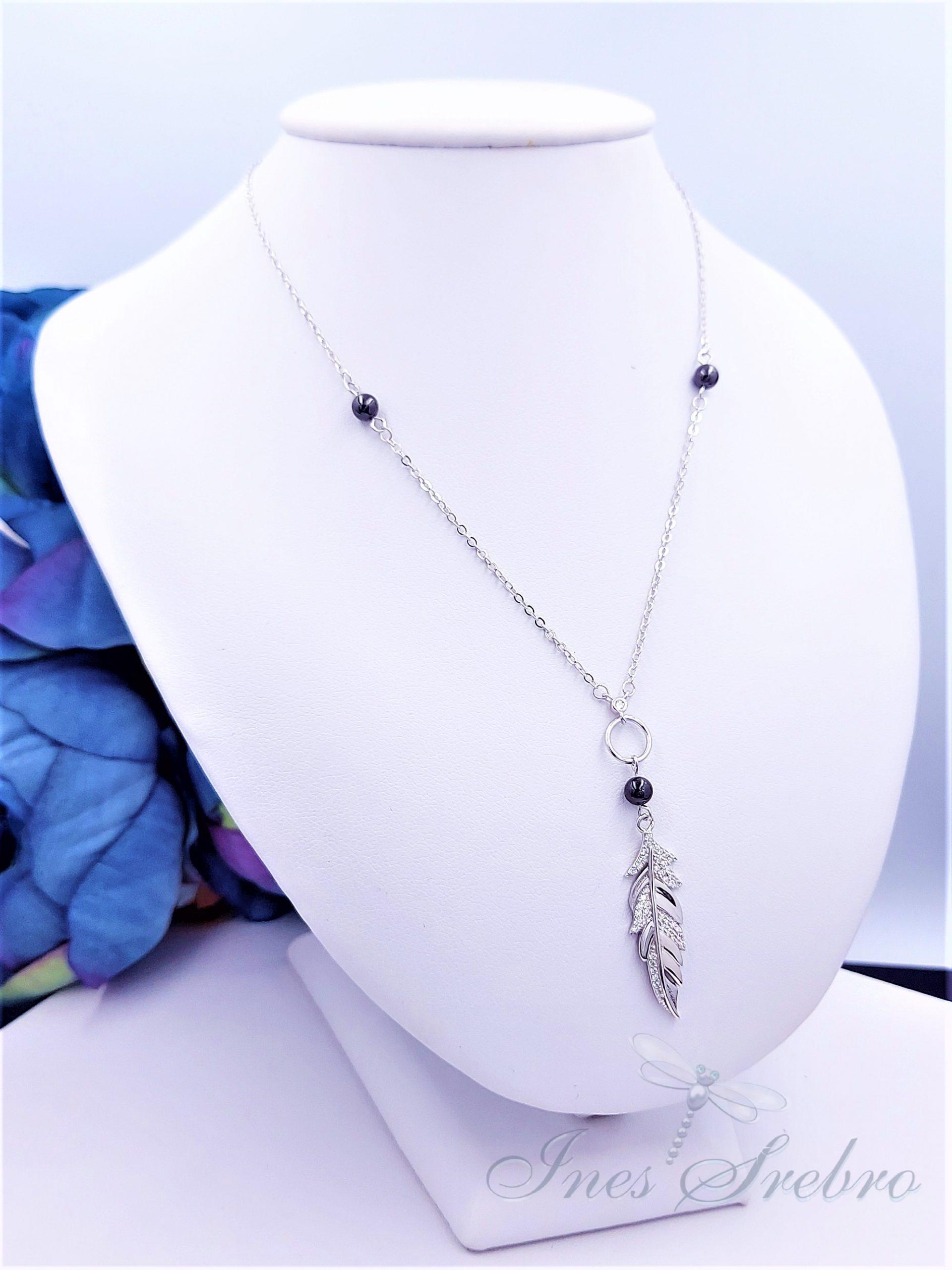 Ch 1169 rodowany naszyjnik z cyrkoniowym piórkiem