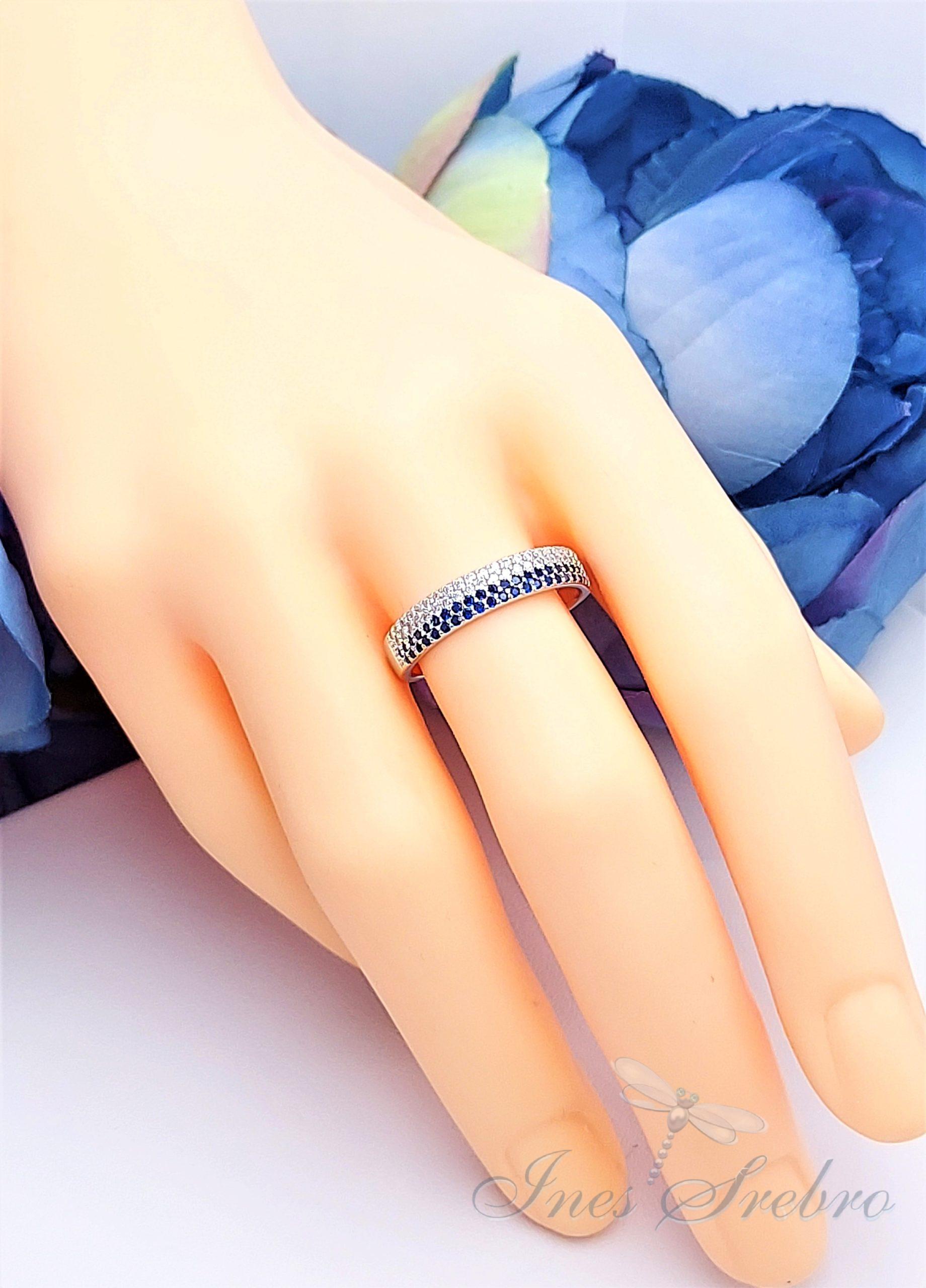 Ch 1199 biało-niebieski pierścionek z czterema rzędami cyrkonii