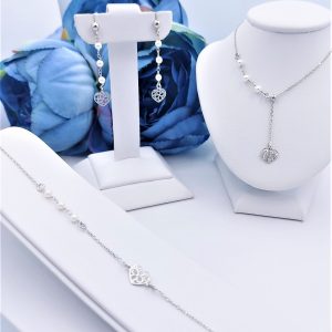 It 055 as komplet rodowany z perełkami i ażurowym serduszkiem