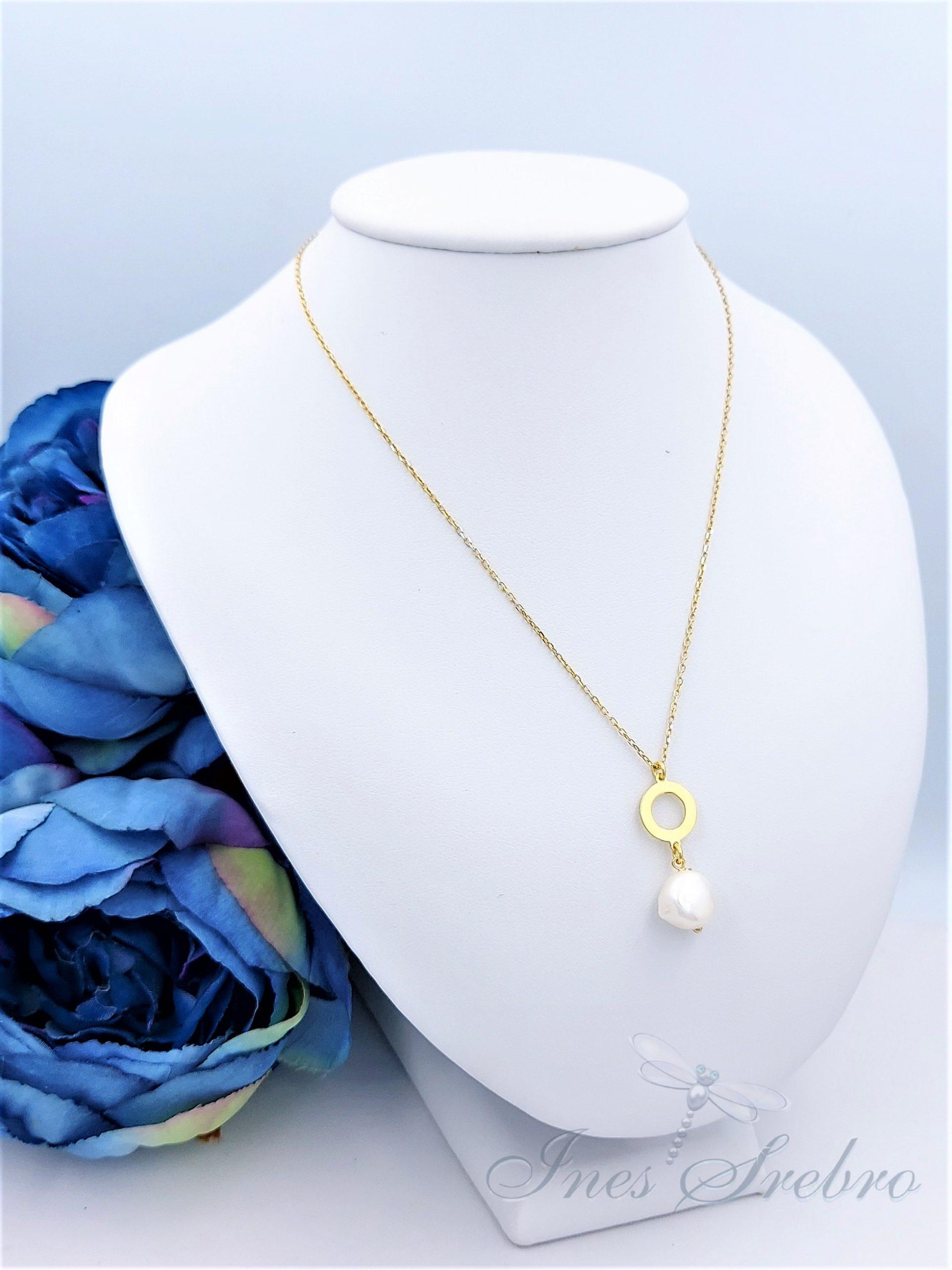 It 063 as perły naturalne z kółkiem naszyjnik pozłacany