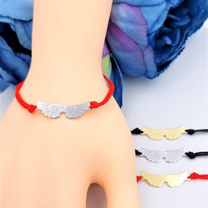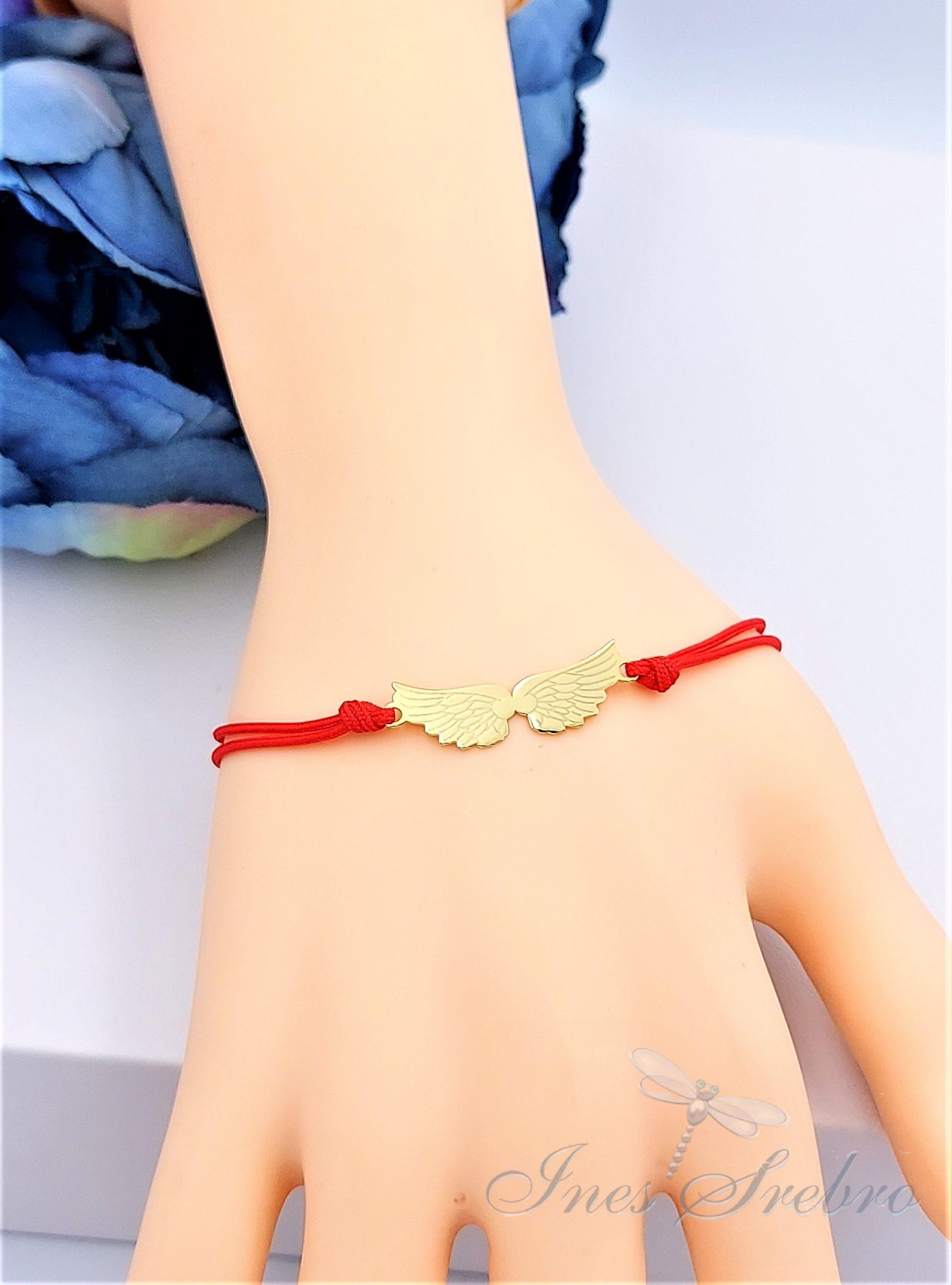 It cotton3 as czerwona bransoletka z pozłacanymi skrzydłami