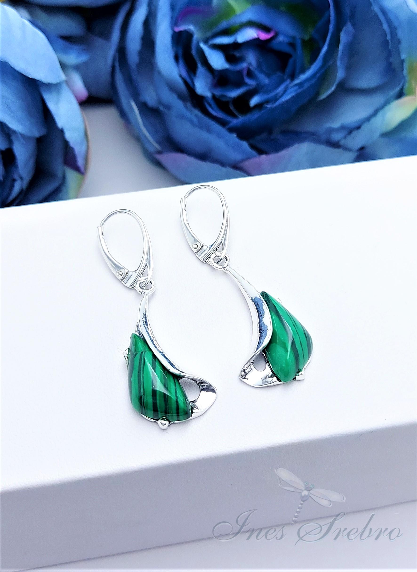 Pa 2218 kolczyki na zapięciu sprężynkowym zawinięty malachit